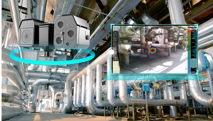 云台搭载声学成像仪,,,采用声学成像定位技术,,,对异常噪音检测、、气体泄露检测及位置进行判定,,并将惰性压缩气体(氮气、、、氧气、、、氦气等)泄露点以图像形态呈现,,实现无人化、、、、远距离、、精确气体泄露检测与定位功能。。。。