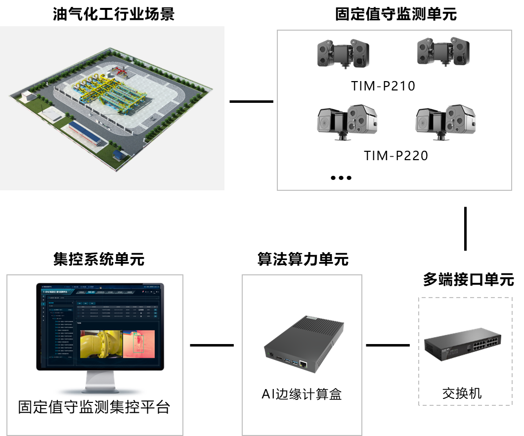 产品具备II类防爆最高等级,,,,标配可见光和红外双视镜头,,,,同时提供两视窗选配定制化传感器。。边缘化架构,,,,集成自研AI系列算法,,,,可自主识别监测目标,,,是应用于油气化工行业场景的智能监测设备。。。。