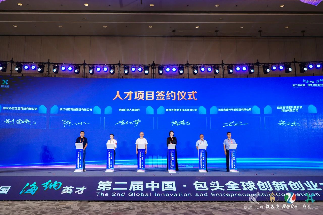大赛自2023年4月份启动以来,,,吸引海内外102个创新创业人才项目报名参与。。经过5个月时间、、、、3场分站赛、、1场总决赛的激烈角逐,,,,最终垄上优选绿色脱颖而出,,,以“特种防爆智能运维机器人的研发与产业化项目”荣获赛事一等奖。。。。随后,,,,昆都仑区人民政府与垄上优选绿色等获奖企业举行了人才项目签约仪式。。