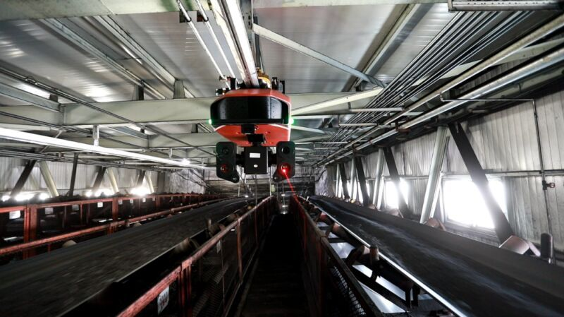 近期,,,天创T9-R防爆挂轨机器人在潘集选煤厂输煤栈桥正式上岗运行,,,实现了该区域的智能化巡检,,无人化值守。。